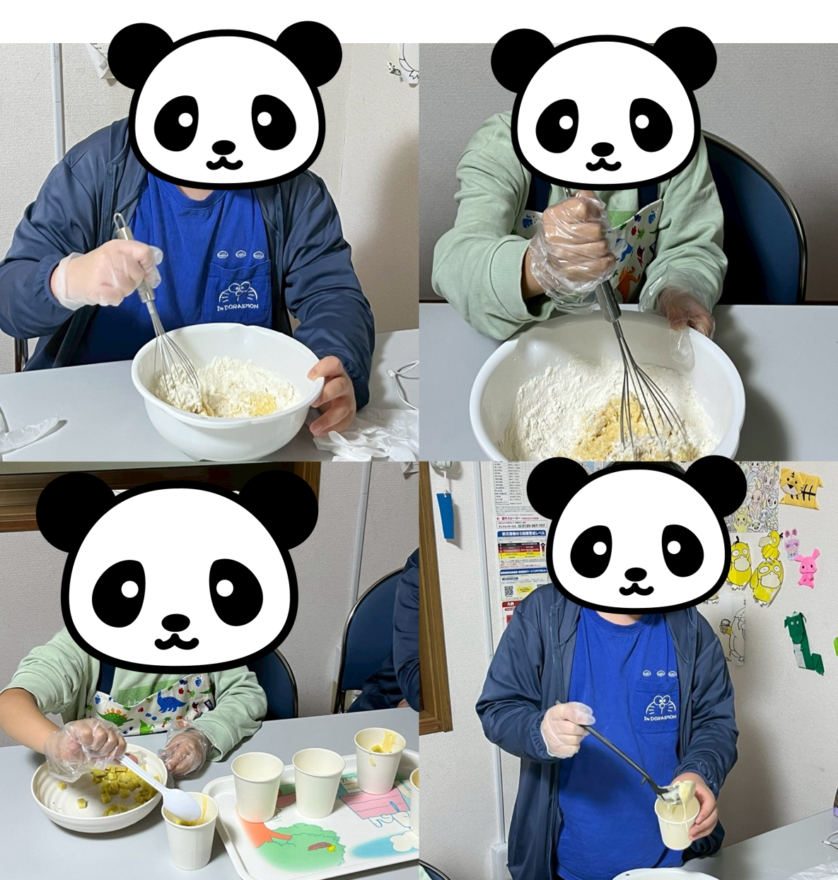 11月の思い出 はばたきフェスタ(地域のお祭り)に行きました🎵 家原大池公園に行き、鯉やハトに餌をあげたり、遊具で遊びました🐥 クッキングでサツマイモ蒸しパンを作りました🍞 壁面飾り作りと壁面飾りの張替えをしました。 カテゴリー: 投稿日:2025年12月09日 次へ
